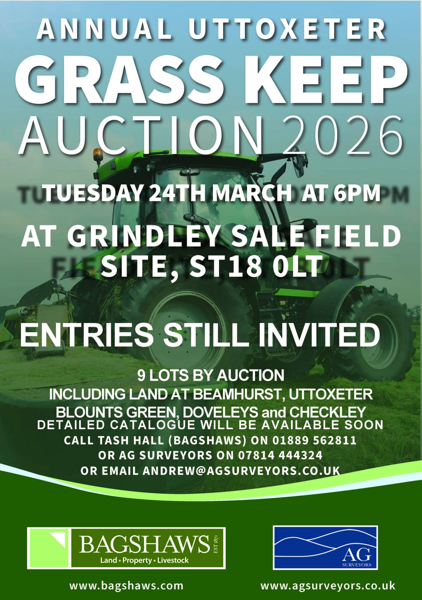 For more information contact Tash Hall on 01889 562811 or email uttoxeter@bagshaws.com