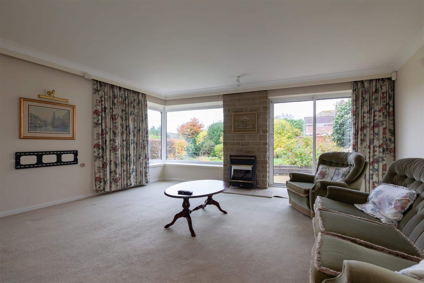 Radiator x 2. Gas fire. Sliding doors to rear.