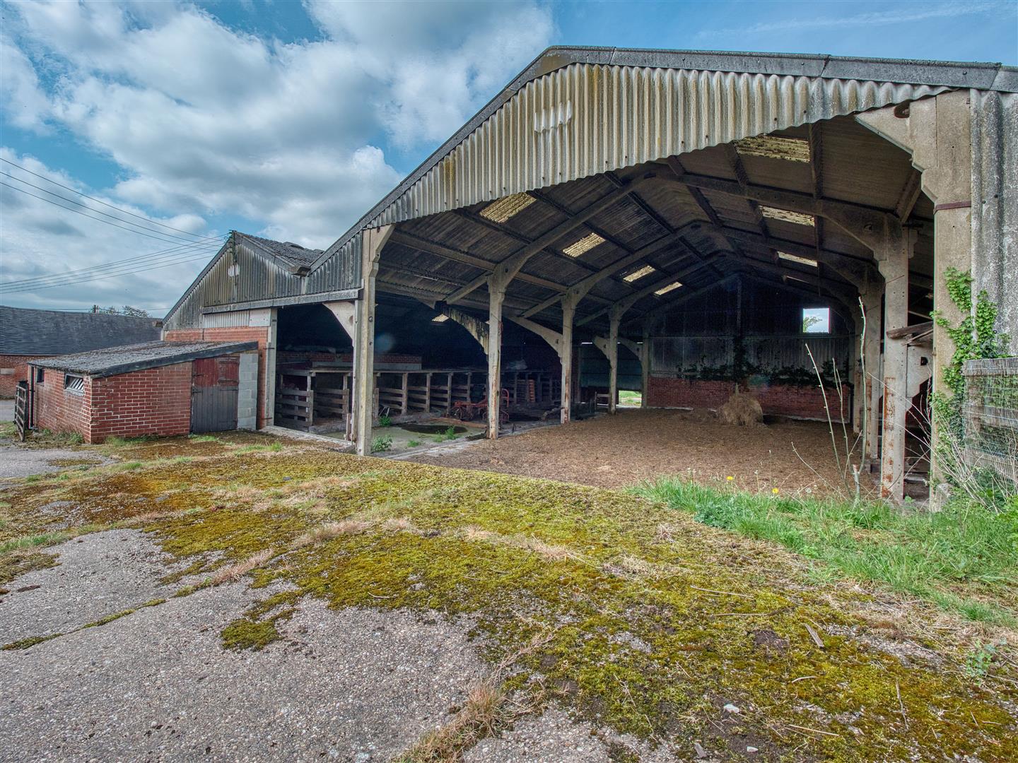 6. Former Cattle Shed – A four bay steel framed Atcost building, with former milking parlour, a collecting yard and a brick under asbestos lean to off the front.