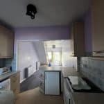 The living/ kitchen area is open plan with stairs going off to the first floor. The kitchen consists of floor and base units with a breakfast bar, stainless steel sink and electric oven point. The family bathroom is to the rear of the property and has W.C, basin and bath. The property is in need of full refurbishment.