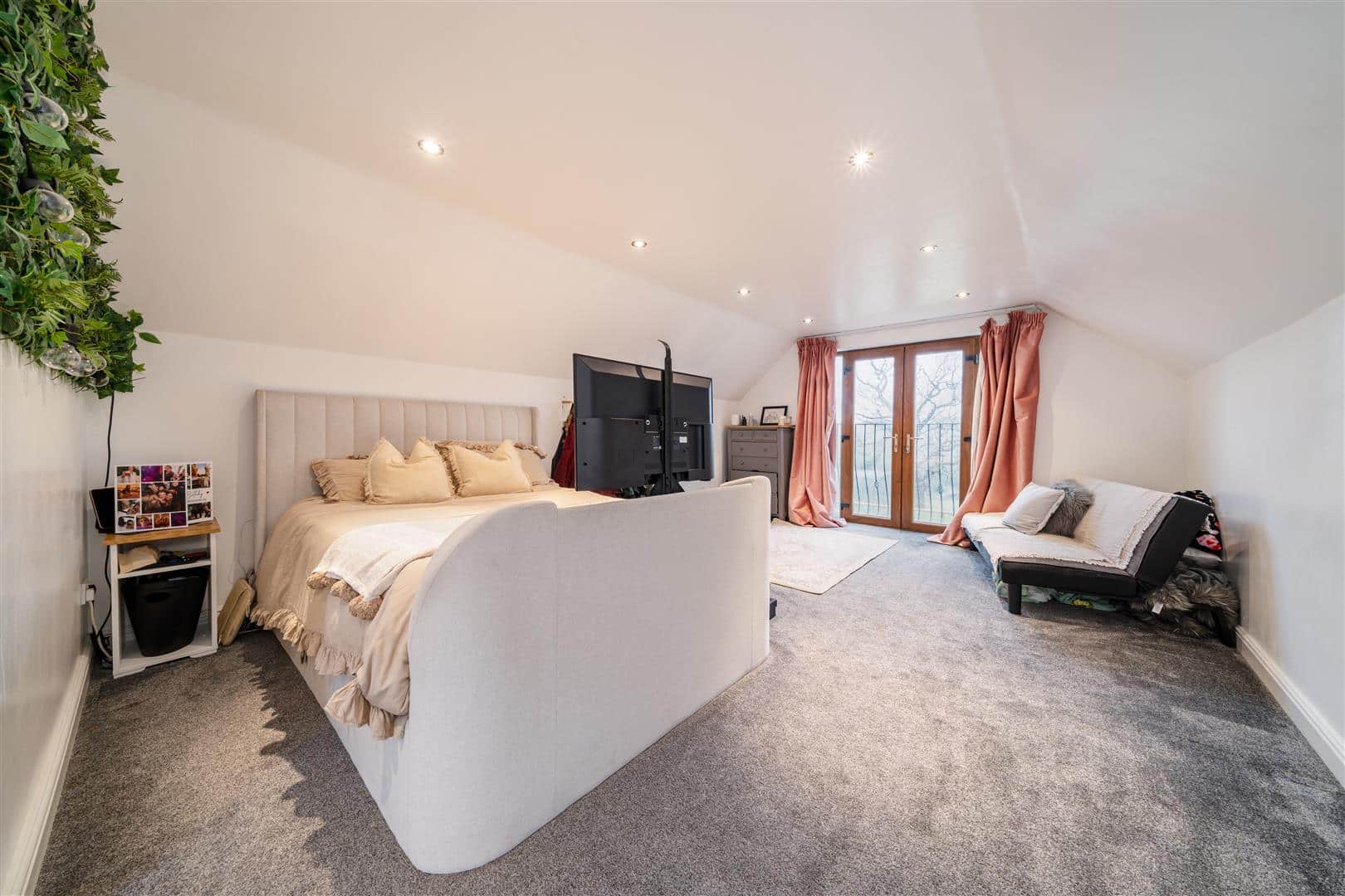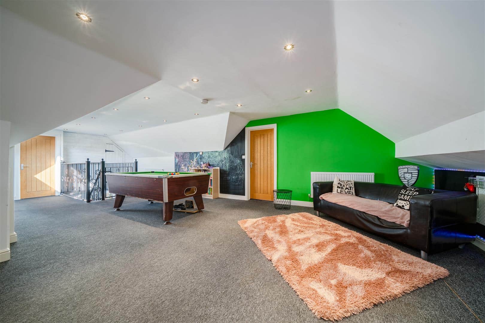 The first floor offers a unique sized landing area currently utilised as a games room with two large double bedrooms leading off, together with a family bathroom with spectacular views over the surrounding countryside