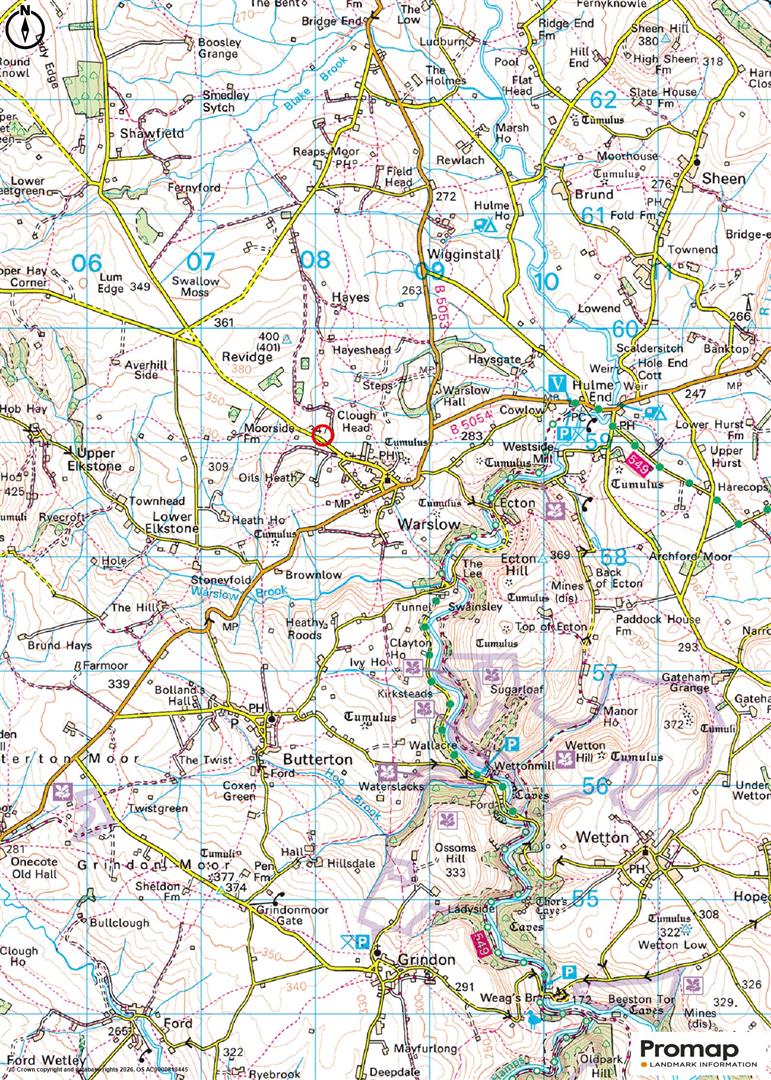 The land is positioned centrally within the rural village of Warslow, offering views across the countryside. Further nearby popular towns and villages, where a comprehensive range of amenities can be found, include; Hartington (3.2 miles), Longnor (4.4 miles), Leek (7.6 miles), and Buxton (12.5 miles). Situated in the Peak District National Park, the area is well-known for its outstanding natural beauty, with numerous scenic walks, bridleways, and outdoor activities close at hand.