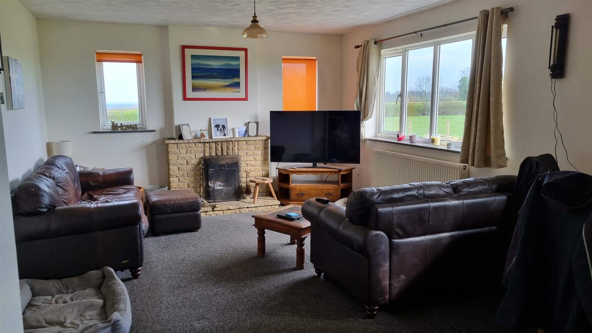 With four double glazed windows to the rear, with open fireplace.