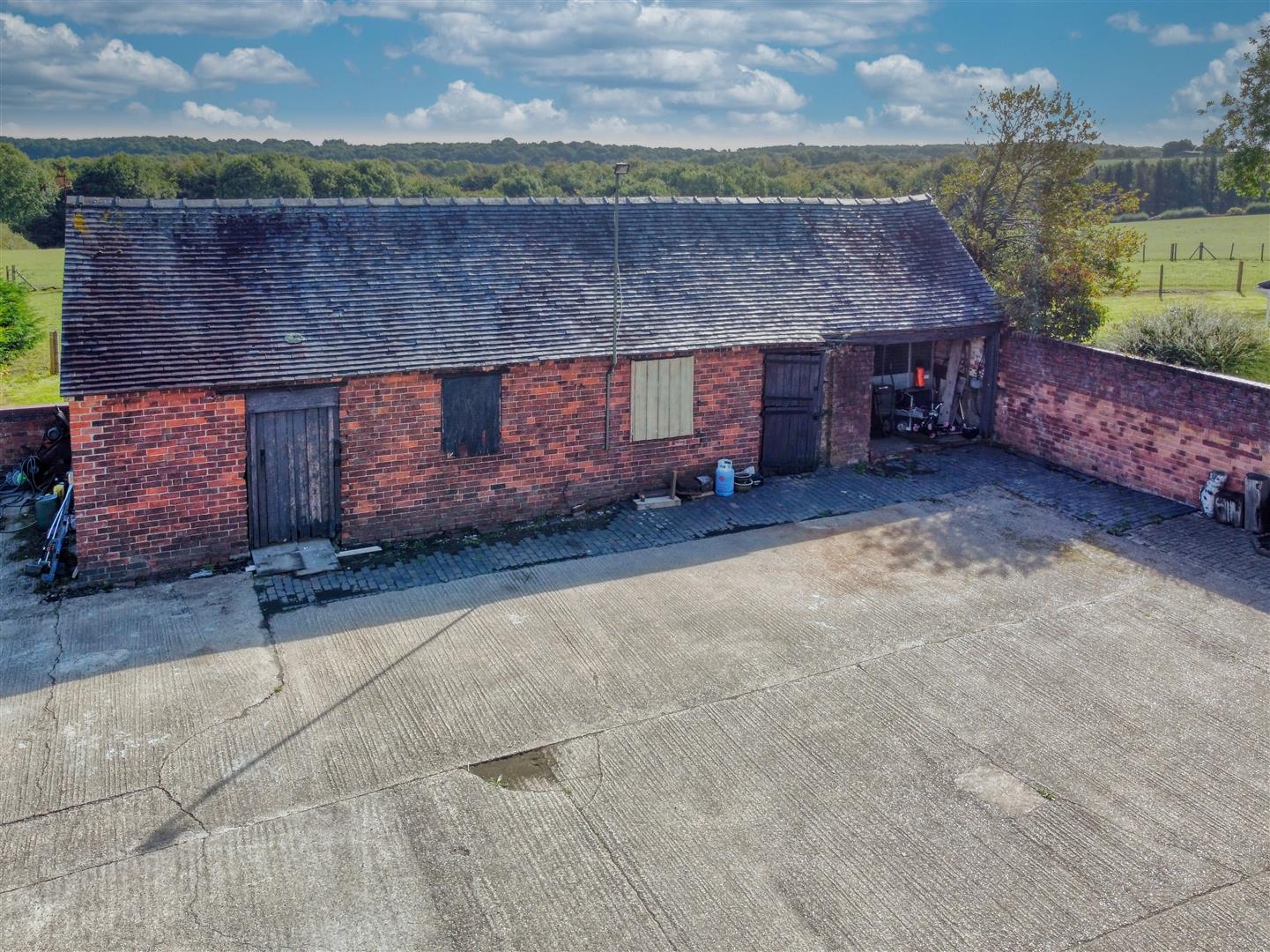 There is a vast range of outbuildings situated within the farm yard. The Traditional Brick Barn is situated adjacent to the property and provides some useful storage. At right angles to the stable and on the opposite side of the farmyard to the house is the Large 10 bay Dutch Barn used for hay storage and animal shelter.