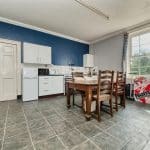 Immediately outside the main side doors is an enclosed paved patio seating area with gate leading to the hardstanding parking area.