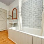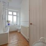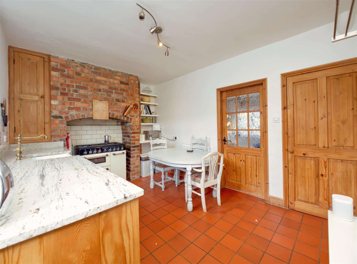 An attractive dining kitchen has been finished to a good standard with granite worktop, a Smeg double oven within a feature brick arched recess with integrated appliances and Belfast sink. The kitchen includes fitted appliances under-counter larder fridge and dishwasher and a walk-in pantry with fitted shelving.
