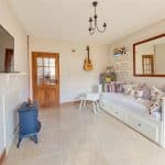 The entrance door leading into the hallway with stairs rising to the first floor and a door into a spacious living room with views to the front aspect and a gas burning fire stove and tiled surround.