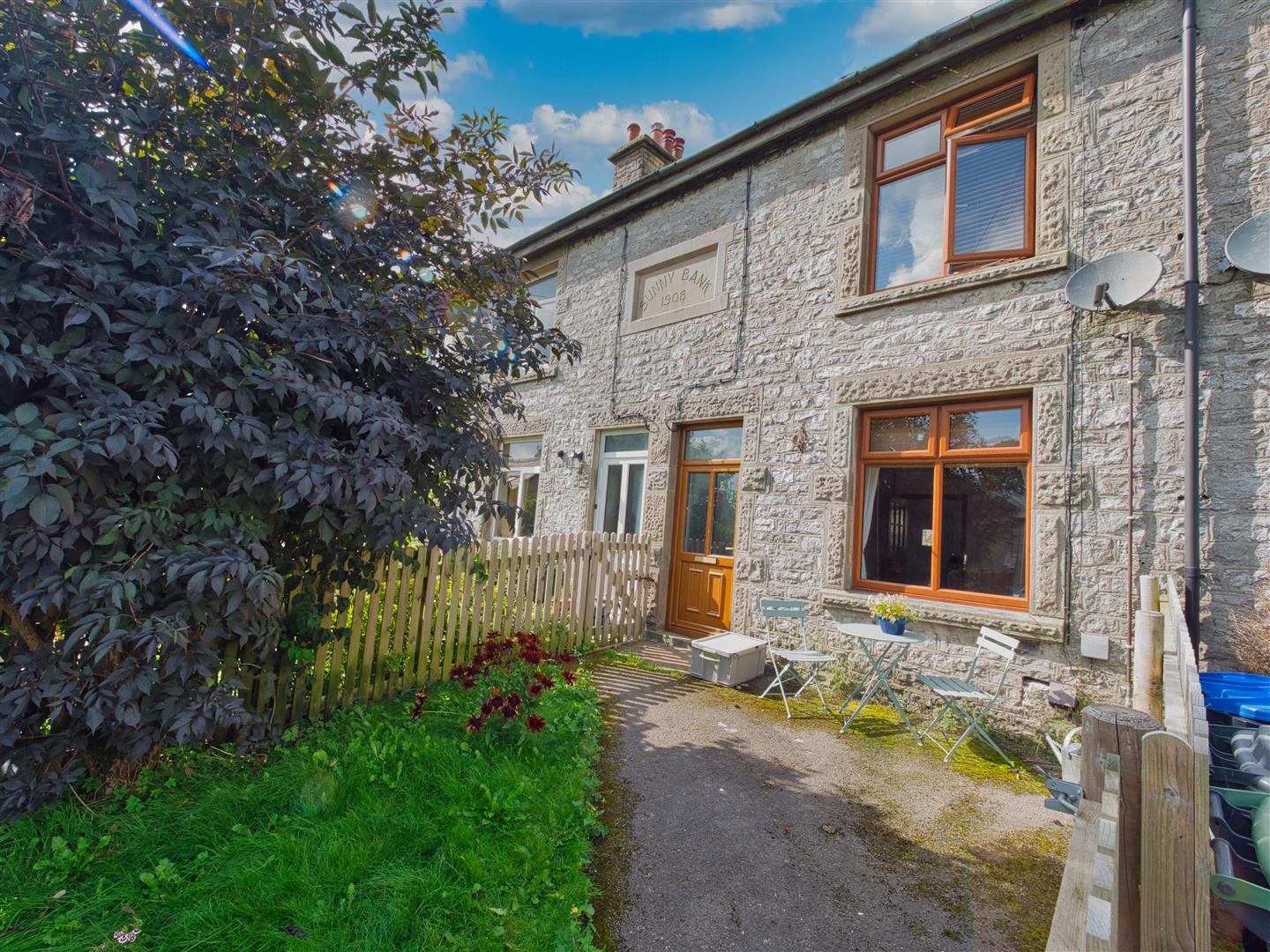 An attractive traditional stone built two bed terraced property, with a good sized front garden, located on a quiet road with far reaching views over the village. Having a spacious and light kitchen and good sized living room, two double bedrooms and family bathroom together with a converted outhouse used as an office and utility room.