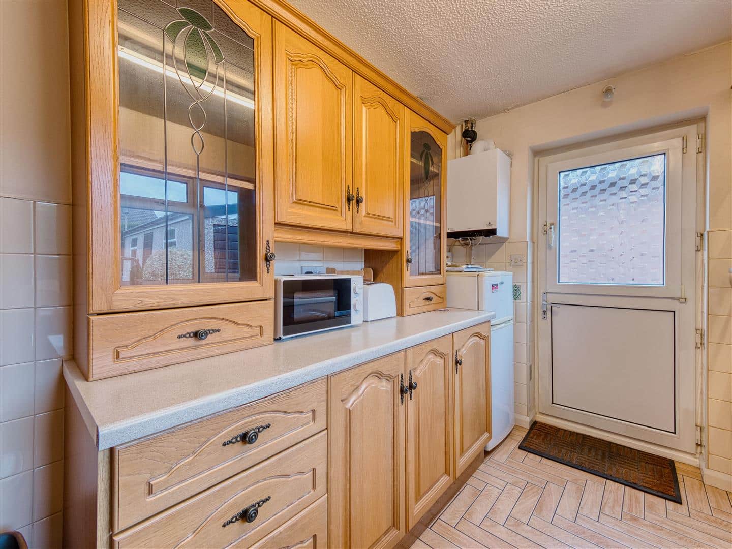 The Study provides a useful additional reception space, with a laminate floor and internal doors through to the Kitchen and Entrance Hall and being open plan through to the extended Dining Room. The Kitchen is fitted with a range matching wall, display, drawer and base units with a rolled edge work surface over, and tiled splash backs. Integrated gas hob and integrated eye level electric over and microwave, one and half bowl sink and drainer, plumbing for washing machine, wall mounted central heating boiler, door to side providing access to the rear garden.