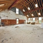The ground floor comprises of a massive open plan room with full length windows overlooking the fields.