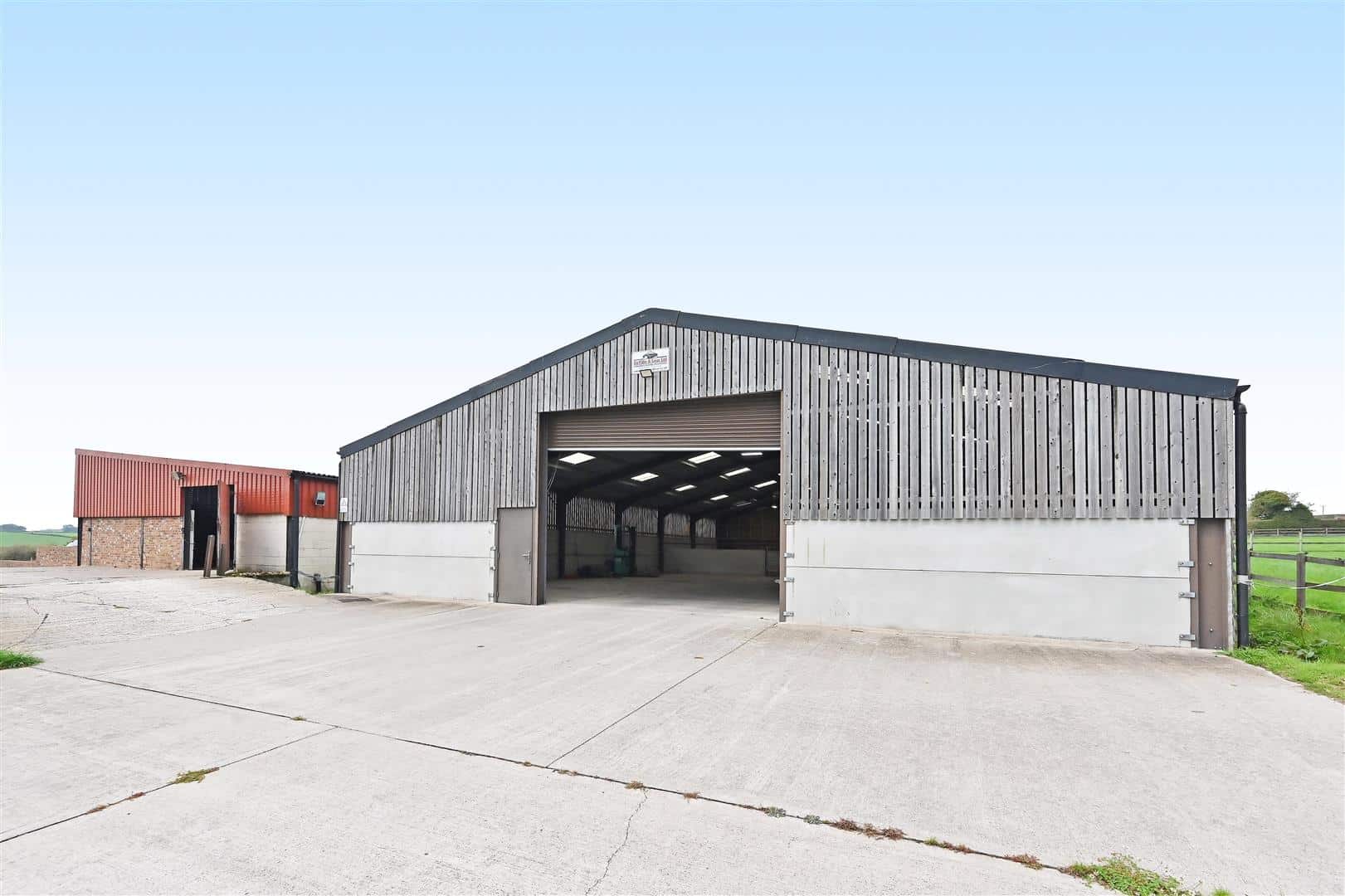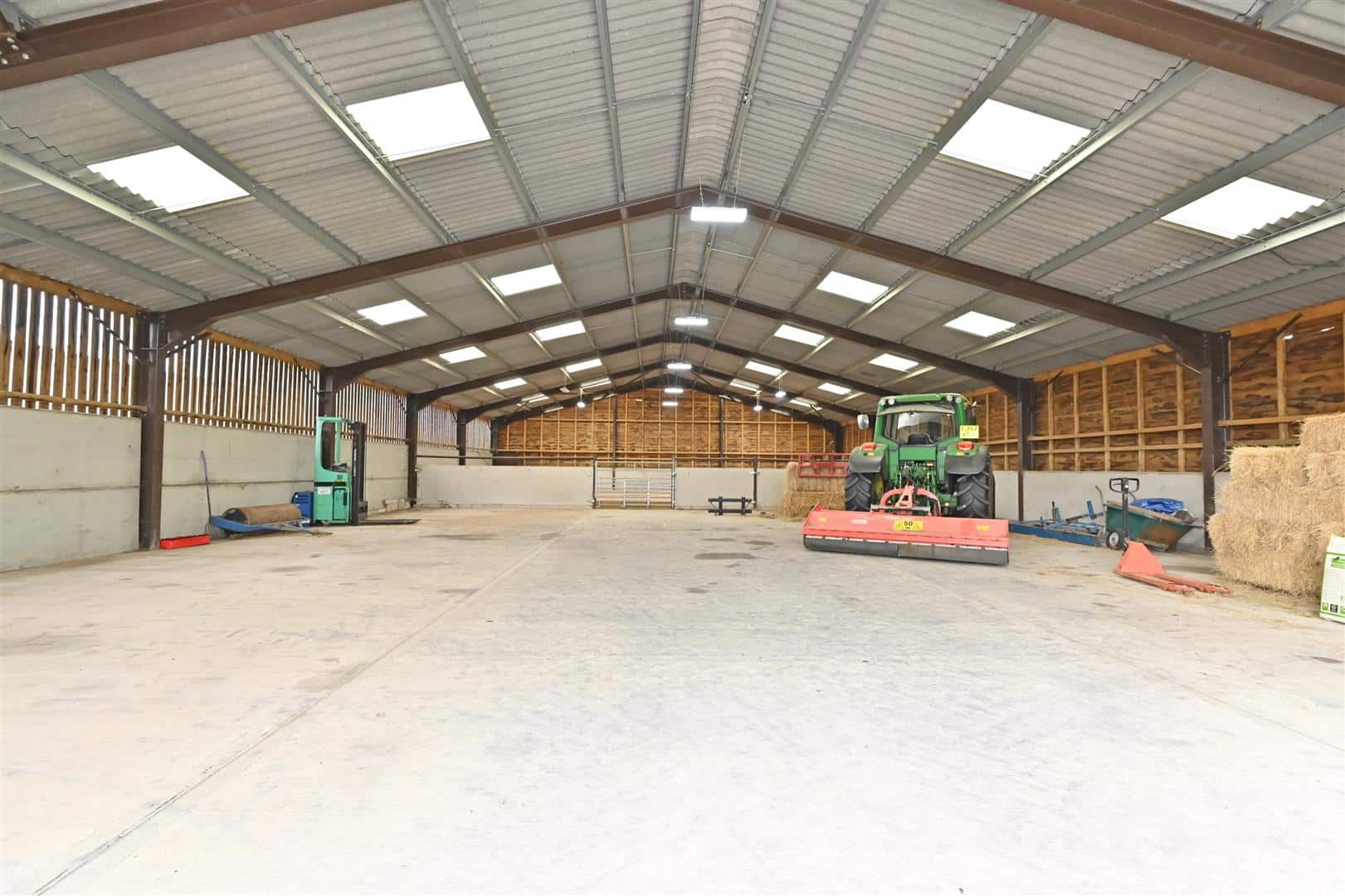 Two large modern buildings provide American Barn stabling for 12 and machinery storage, indoor exercise ring and extensive feed/hay storage.