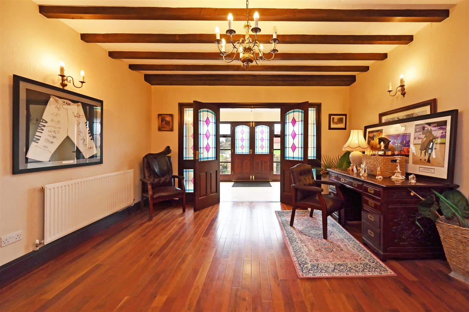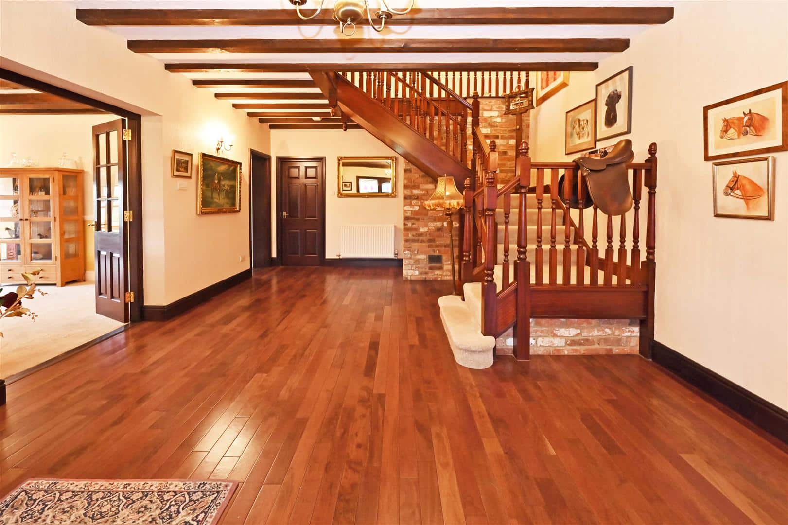 The Farm House provides extensive accommodation with period features. From the Front Hall (with wc off), doors open into an impressive Reception Hall with stairs to the first floor.
