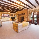 Doors lead to the Drawing Room which is a large spacious room with stone fireplace and windows to the garden and double doors out onto the terrace.