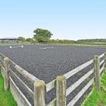 There is a covered Claydon horse exercise adjacent to the buildings