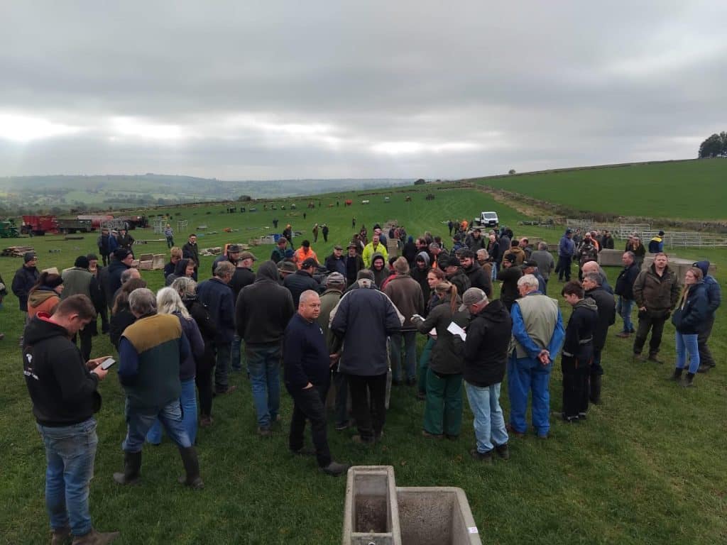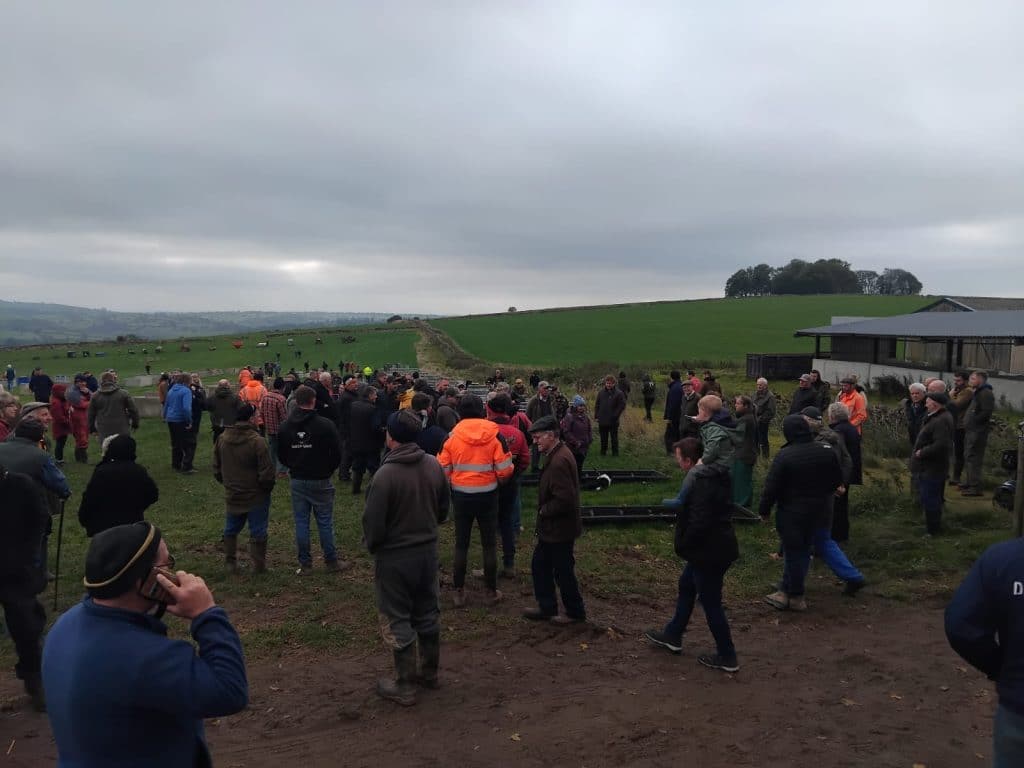 “Large crowd gathered for a large dispersal of Livestock Equipment and Sundries”